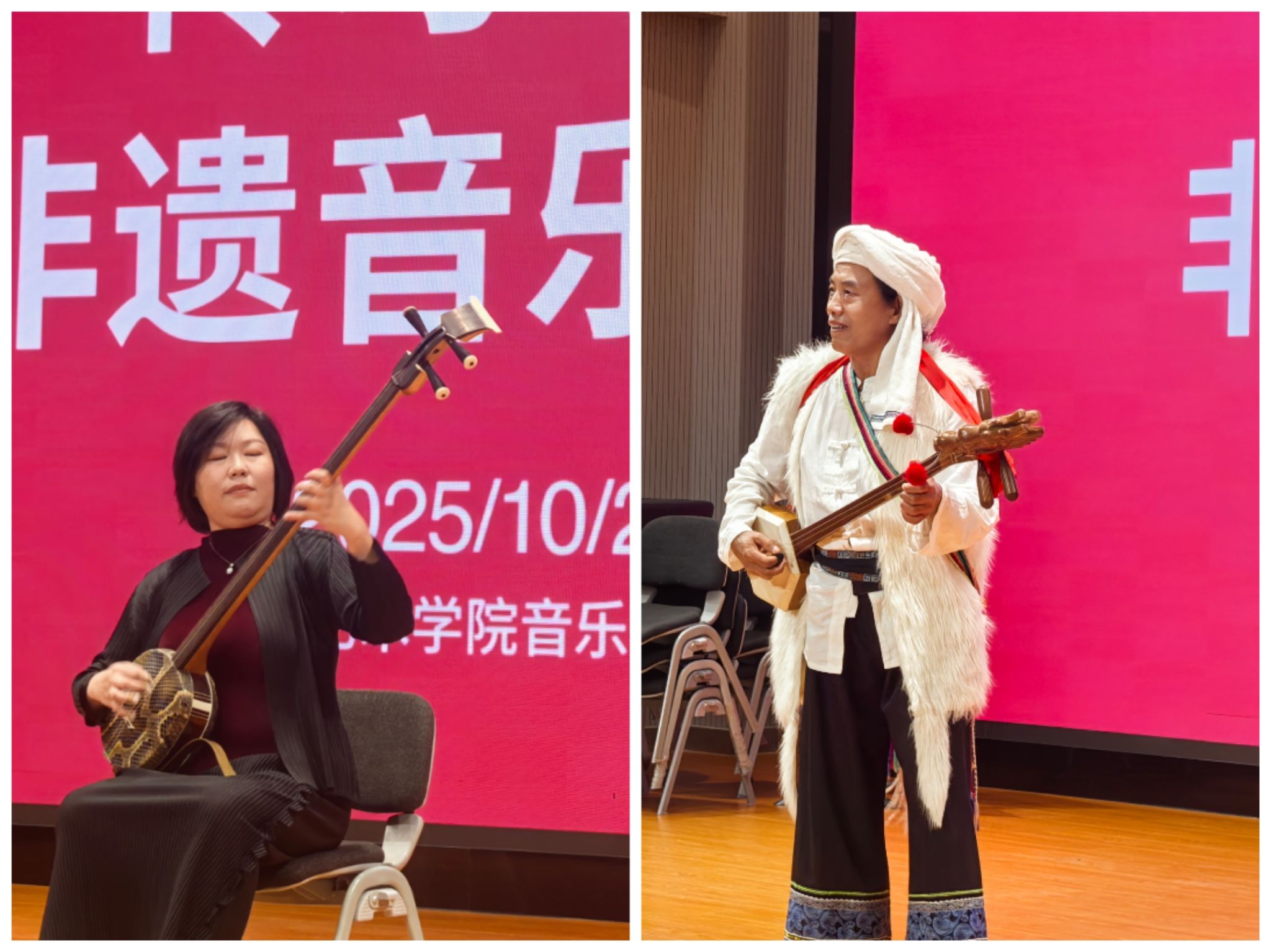 2025年10月21日,由中央音乐学院、中共云南省委宣传部主办的2025·云南第三届中国民族音乐传承周在昆启幕。10月23日,由bw必威西汉姆联官方网站承办的“传习与对话非遗音乐交流会”在bw必威西汉姆联官方网站音乐学院B403报告厅举行,本次交流会以非遗音乐的活态传承与当代实践为主题,通过学者讲解、传承人展演、跨校师生互动等环节,呈现了一场融学术性与实践性于一体的民族音乐文化交流盛会。