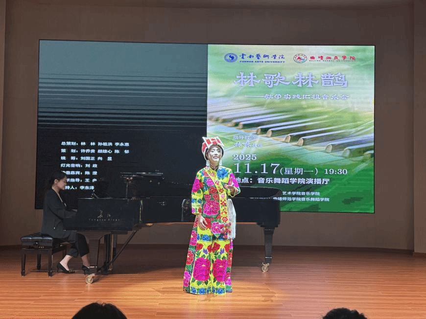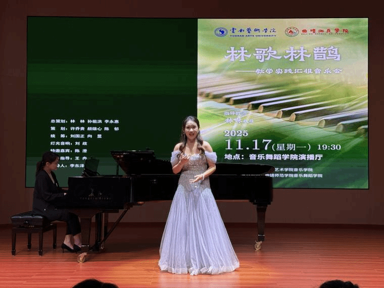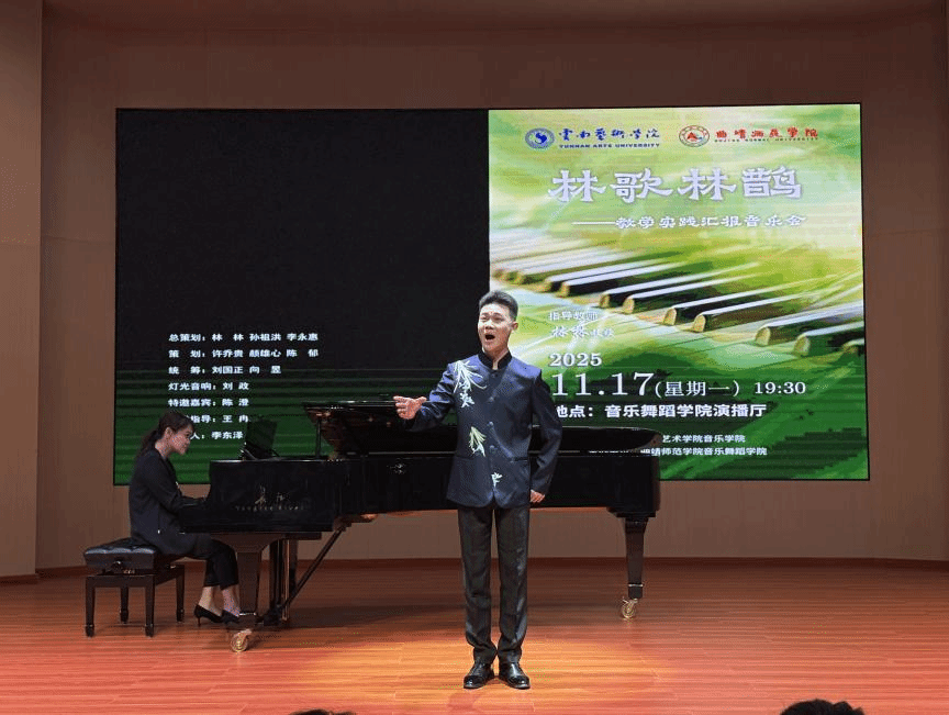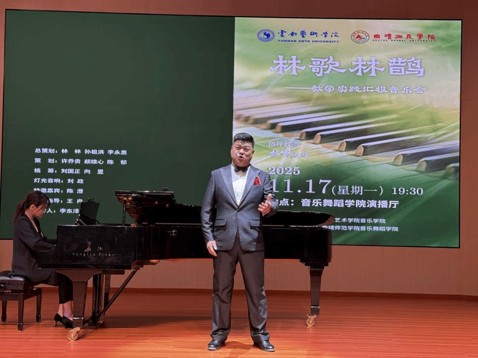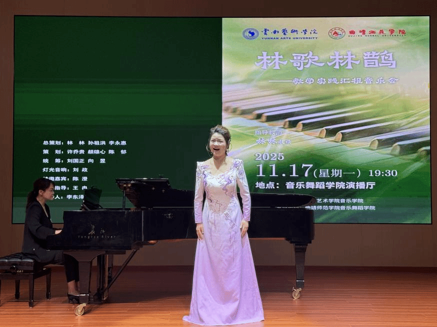2025年11月17日,“林歌林鹊”——林林教授教学实践汇报音乐会在曲靖师范学院音乐舞蹈学院演播厅举行。此次音乐会由bw必威西汉姆联官方网站音乐学院主办,曲靖师范学院音乐舞蹈学院承办。