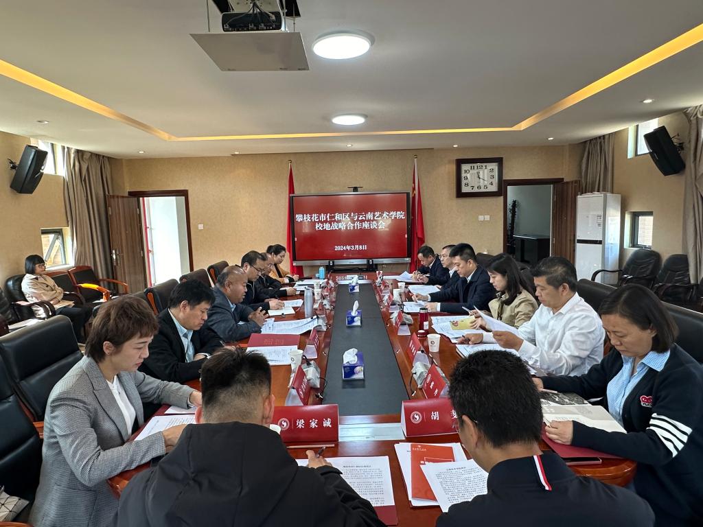 3月8日,四川省攀枝花市仁和区书记班宏率区委宣传部、组织部、教体局、人社局、文广旅局和平地镇有关负责同志到bw必威西汉姆联官方网站调研交流商谈战略合作事宜学校党委副书记杨国良、副院长郎启训相关部门负责人参了活动。