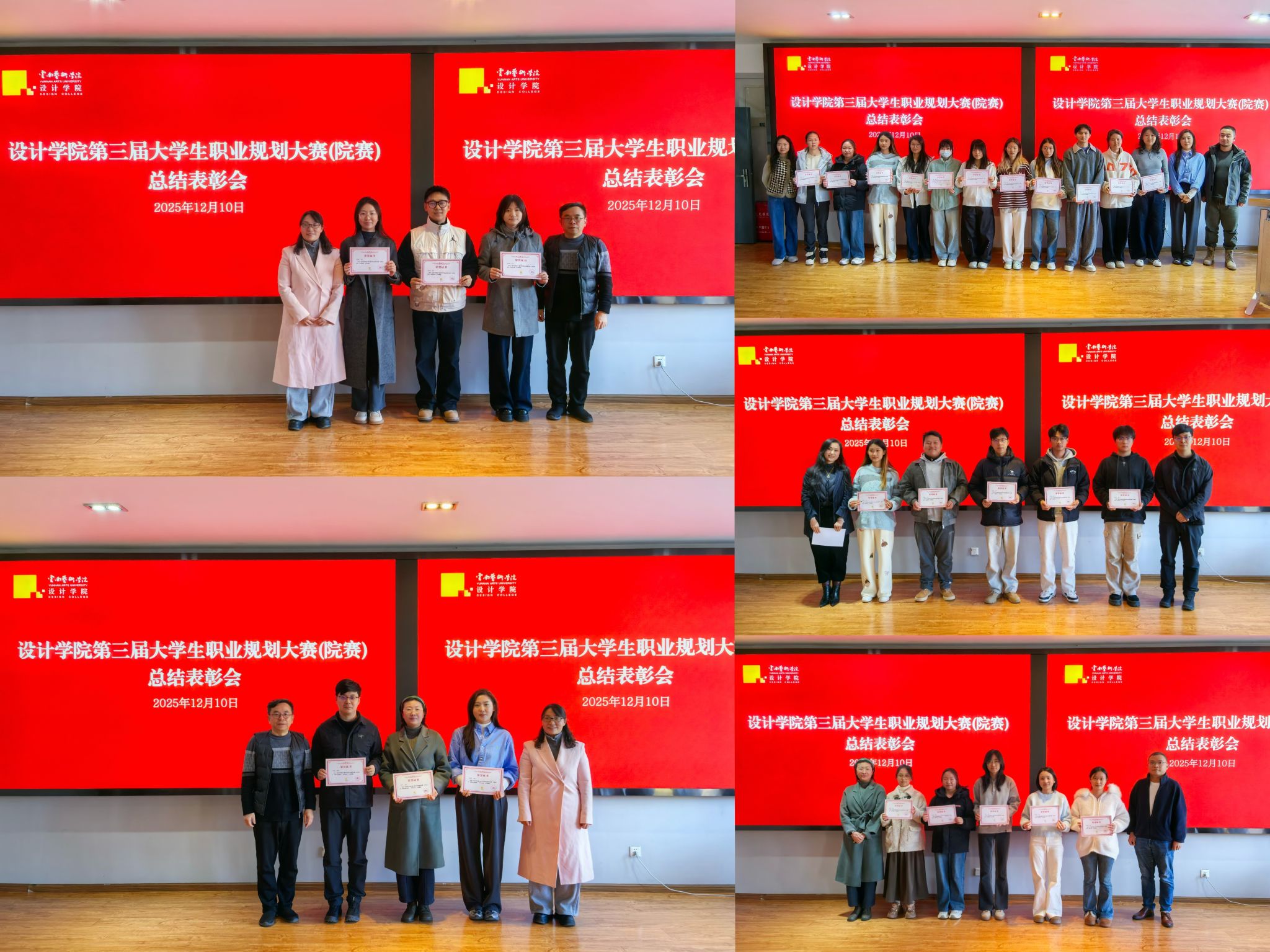 12月10日,设计学院召开第三届大学生职业规划大赛(院赛)总结会,学院党政领导和全体参赛选手、指导教师参加会议。会上通报了本次大赛开展情况,设计学院万凡院长宣读获奖名单,党政领导和老师们为参赛选手和优秀指导教师颁发了获奖证书。