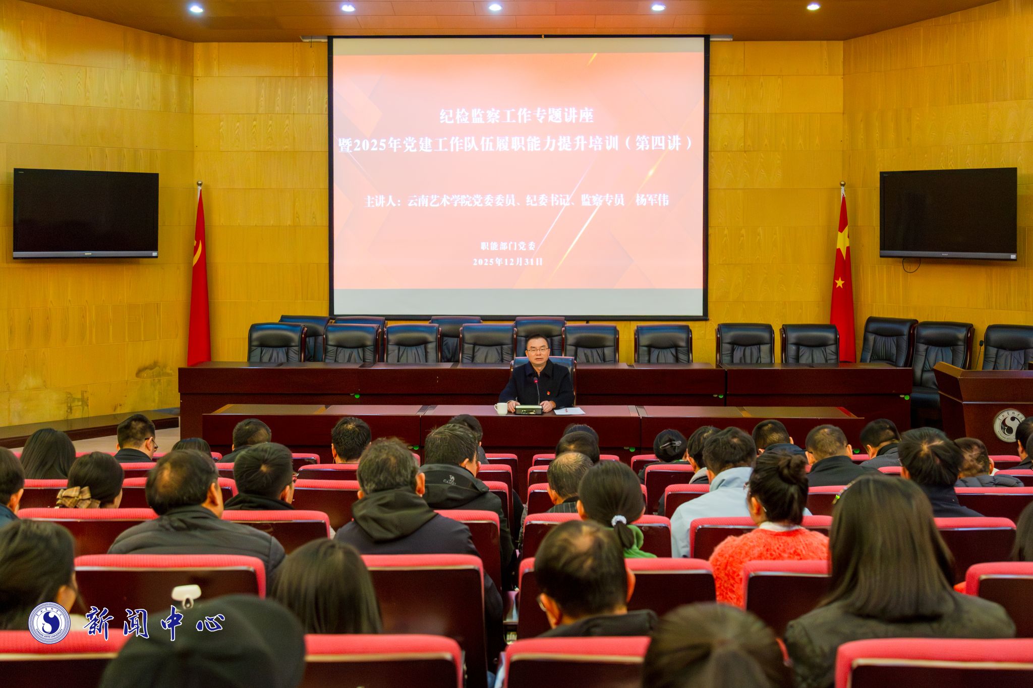 为进一步提升党务干部的政治素养、纪律意识和履职能力。12月31日,bw必威西汉姆联官方网站职能部门党委在行政楼116报告厅举办纪检监察工作专题讲座暨2025年党建工作队伍履职能力提升培训(第四讲)。讲座邀请学校党委委员、纪委书记、监察专员杨军伟同志作专题辅导。讲座由职能部门党委书记主持。职能部门党委全体党员、二级纪委书记、专职组织员参加学习。