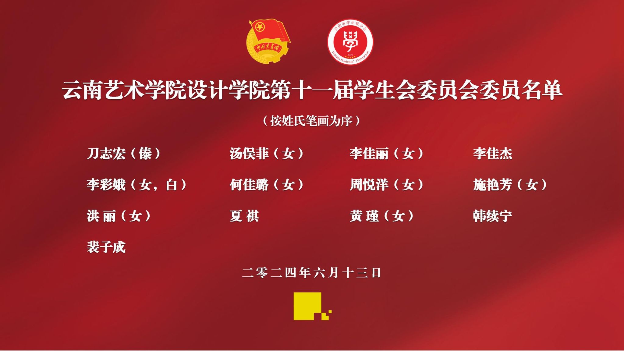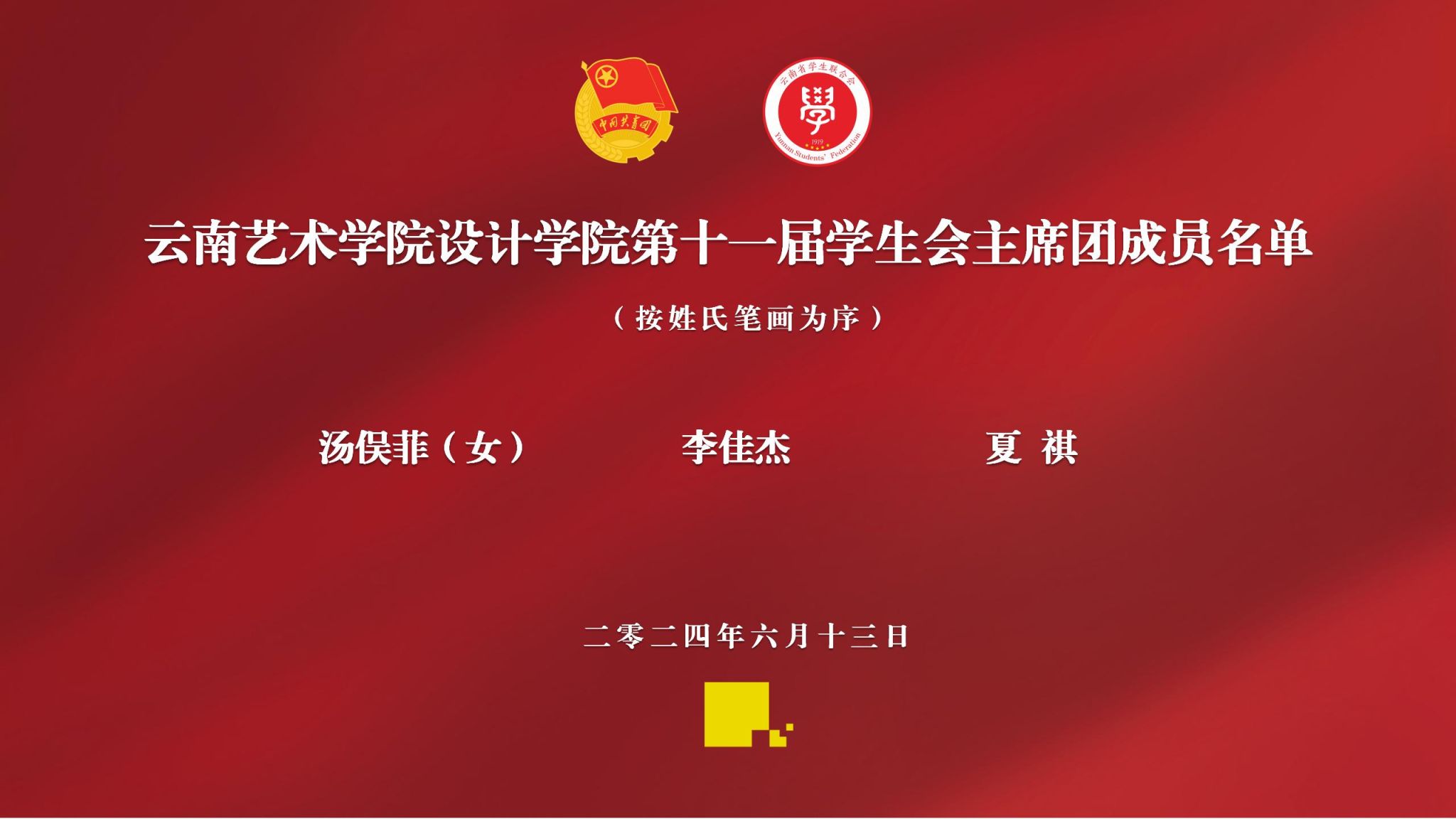 校团委书记赵颖老师在讲话中表示:设计学院学生会在设计学院党委的正确领导下,在设计学院团委和校学生会的指导下,在聚焦政治引领、加强社会实践、选树青年典型、坚持服务同学、加强自身建设等方面取得一定成绩。面对新形势新任务新要求,向设计学院学生会提出四点要求:一要强化政治引领,建设政治可靠的学生会。始终坚持以习近平新时代中国特色社会主义思想为指导,以加强对同学的政治引领为根本,巩固和深化团员和青年主题教育成果,带动广大同学深刻领悟“两个确立”的决定性意义,坚决做到“两个维护”,坚定不移听党话、跟党走。二要围绕中心大局,建设砥砺奋斗的学生会。坚持学校与社会相衔接,理论学习与实践锻炼相结合,找准学生会工作的切入点、结合点和着力点,深化实施云岭青年心向党“1+5”工程,引领广大同学勇担时代责任,主动将“小我”融入“大我”,到西部、到基层、到祖国需要的地方建功立业,提高大局贡献度。三要当好桥梁纽带,建设根植同学的学生会。发挥学生会根植同学优势,扎实开展“我为同学做实事”实践活动,帮助同学解决急难愁盼问题,努力形成一批党政关心、同学喜欢、学生会主导、具有设计特色的服务项目,提高同学满意度。四要勇于自我革命,建设清新阳光的学生会。不断巩固深化学生会组织改革成果,坚持问题导向,坚持从严治会,以扎实的工作成效赢得社会对学生会工作的广泛认可。