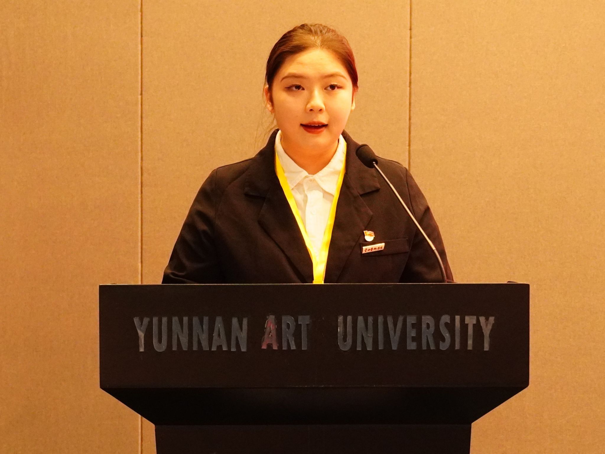开幕式上,校学生会主席团成员谭媛同学代表校学生会向大会的召开表示热烈的祝贺!她在讲话中表示,面对新形势新任务新要求,校学生会将和设计学院学生会一起,与学校各学院学生会携手共进、交流经验、共同努力、不懈奋斗。同时提出三点工作思考,一要始终坚持党的领导。充分发挥好党联系青年学生的桥梁和纽带作用,努力将广大同学最广泛最紧密地凝聚在党的周围。二要勇担责任砥砺奋斗。积极引导广大同学把自己的理想同祖国的前途、把自己的人生同民族的命运紧密联系在一起,不断培养爱国之情、砥砺强国之志、实践报国之行。三要全心全意服务同学。要坚持从同学中来、到同学中去,把同学的满意度作为检验工作的标尺,真正把学生会建设成为同学们想得起、找得到、靠得住的温暖家园,服务同学成长成才。