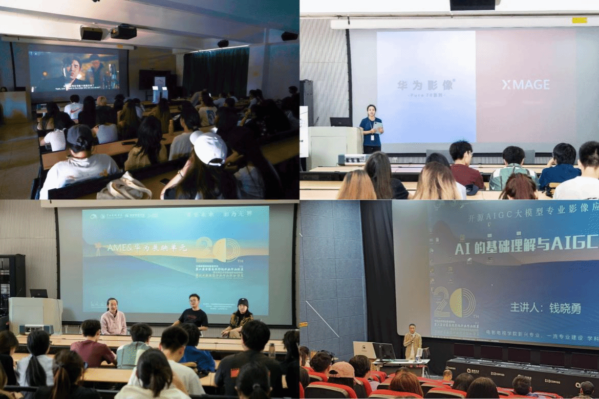 除了作品展示,一系列专题讲座、实战工作坊及特别放映活动,如《日夜江河》的点映与互动、强氧科技AIGC技术应用讲座等,不仅为参与者提供了学习与交流的平台,更为影视教育与行业实践之间架设了桥梁。华为金鸡奖手机创投计划的公开课、AME影视计划的特别活动等,进一步拓宽了学生的视野,深化了他们对影视产业现状与趋势的理解。