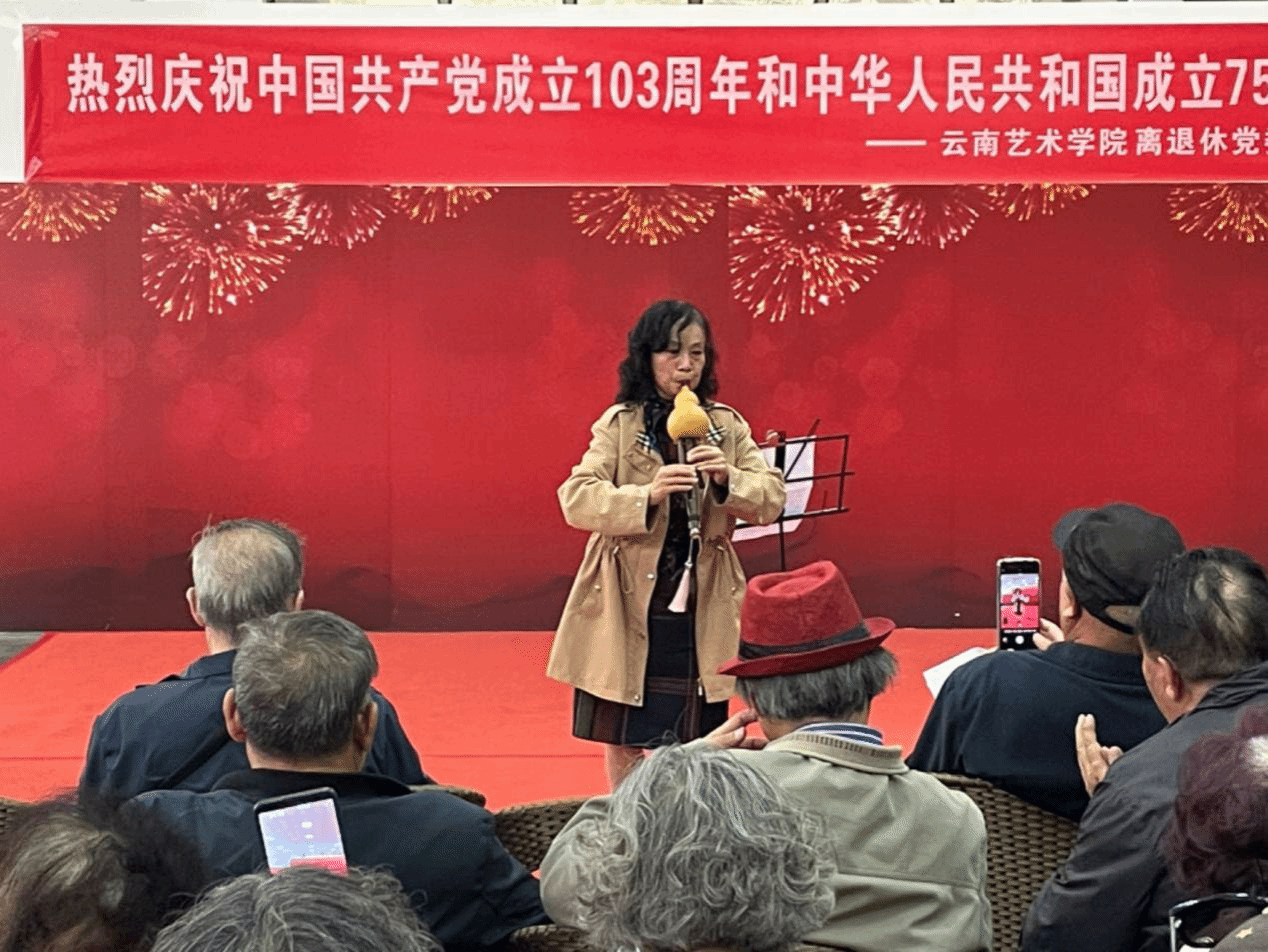 离退休教工第一党支部尹茂铨、黄锦华男女声二重唱、原创白族歌曲《花上花》