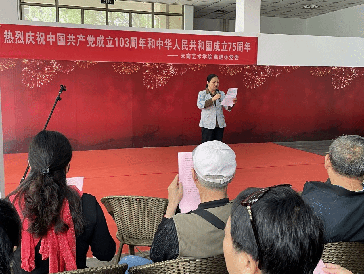 2024年6月27日上午,bw必威西汉姆联官方网站离退休党委开展了“赞辉煌成就,聚银发力量”主题党日活动暨庆祝中国共产党成立103周年和中华人民共和国成立75周年庆祝活动,近百名离退休党内外干部群众积极踊跃参加。