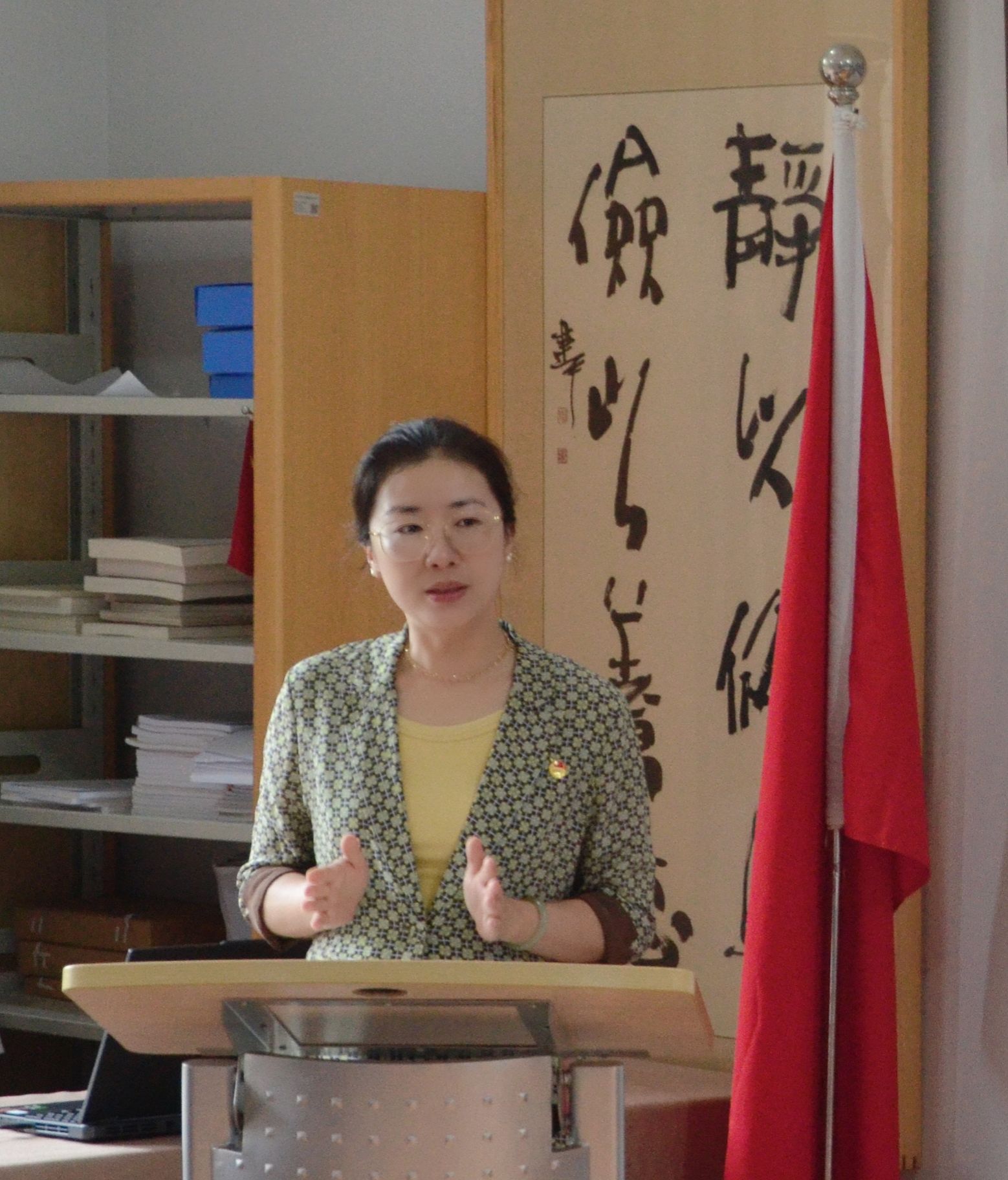 设计学院党委委员、团委书记王瑛老师向新团员们表示祝贺,并提出几点希望:一是坚定理想信念,做青春向党的有志青年。要深刻领会习近平新时代中国特色社会主义思想的精神实质和丰富内涵,用科学的理论武装头脑。要胸怀“国之大者”,坚定理想信念,成长为德智体美劳全面发展的社会主义建设者和接班人。二是练就过硬本领,做勤思善学的有识青年。希望新入团的同学们,以优秀学生为榜样,发扬学校优良传统,紧跟时代发展步伐,努力学习专业知识和技能,在学习中积累知识、锤炼品格、增长才干、练就本领。三是勇担时代重任,做挺膺担当的有为青年。青年一代有理想、有本领、有担当,国家就有前途,民族就有希望。希望大家牢记习近平总书记殷切嘱托,以实际行动践行云艺设计青年“请党放心,强国有我”的铮铮誓言。