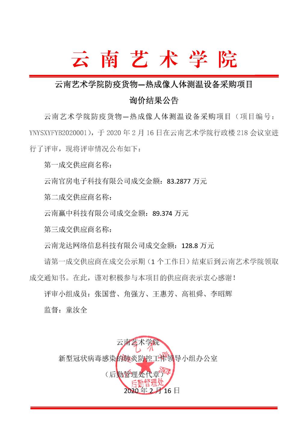 bw必威西汉姆联官方网站防疫货物—热成像人体测温设备采购项目询价结果公告