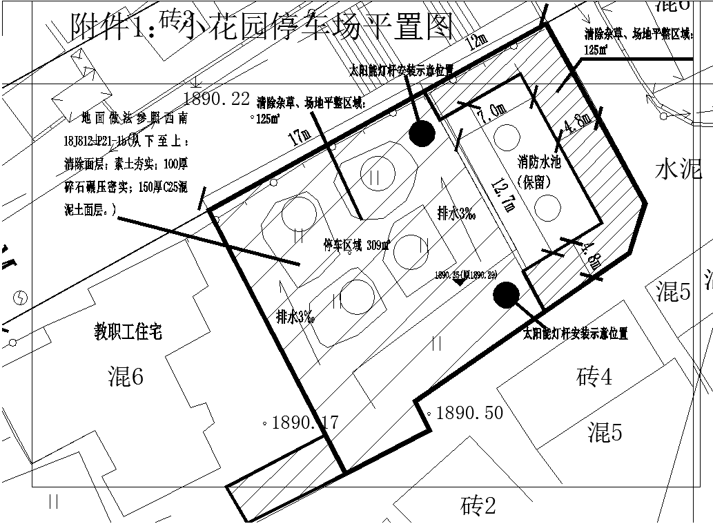 本项目位于bw必威西汉姆联官方网站拟对麻园老校区教职工住宅(附艺校点式楼)小花园区域改造成为混凝土停车场。同时,将老校区留学生楼与尚源丽城未完全封堵的区域进行封堵。现对上述两个内容进行施工询价。