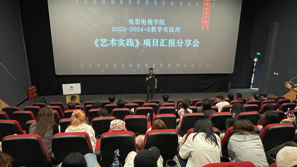 会议的第二阶段是教学实践周的项目汇报。会议共挑选了12个在教学实践周中完成较好的项目组,由指导教师带领项目组成员进行项目总结与经验分享。此次影视学院组织开展的实践周项目主要侧重于产教融合、服务地方,面向新兴技术、拓展前沿领域。项目覆盖了云南省内的7个地州,涉及农业、旅游、党建、政法、房地产、民俗文化等多个领域,并运用了AI、VR、虚拟制片等前沿技术。会议上,通过师生们生情并茂的汇报,既讲述了项目在完成过程中的艰辛与困难,也展示了实践项目的丰硕成果,更分享了实践过程中的经验与体会。这些项目不仅在产教融合方面取得了显著成效,而且在服务地方经济、推动社会进步方面发挥了积极作用,不仅展现了影视学院在实践教学方面的成果,也为未来的教学和实践项目开展提供了宝贵的经验。同时通过这些实践项目,学生们也得以将理论知识与实际操作相结合,提高了自身的创新能力和实践技能。最后,洪志明书记对此次分享会进行了总结,对实践周项目的圆满完成表示肯定,并同时指出了实践过程中存在的一些问题。他鼓励各项目组再接再厉,期待未来取得更大的成绩。
