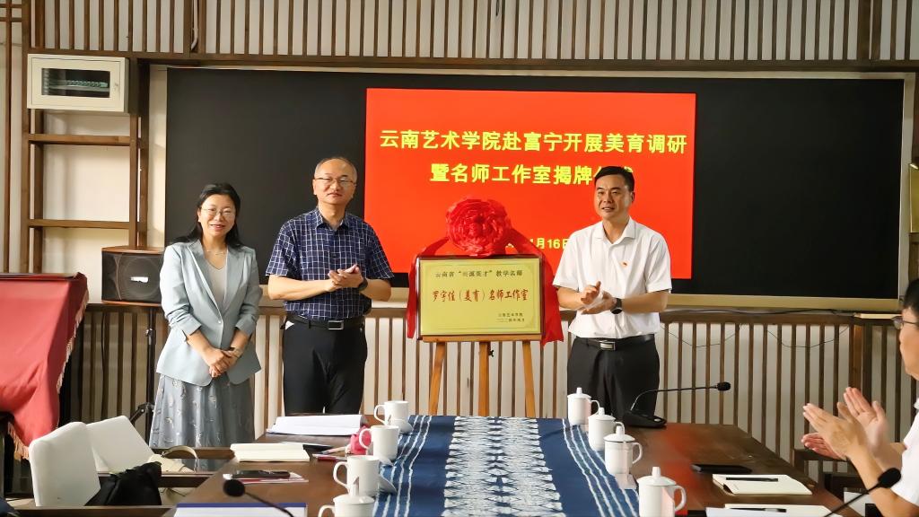 座谈会上,李建宇和刘光祥共同为云南省“兴滇英才”教学名师罗宇佳(美育)名师工作室揭牌。