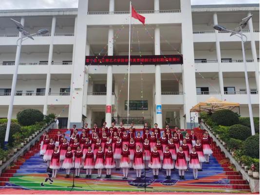 根据我校实施方案以及富宁县学校美育需求,学校派驻2名优秀美育教师、20名优秀学生到富宁县9所学校开展工作。派驻师生有条不紊地进行听课、教学、教研、社团、巡回授课以及艺术展演活动。一是与富宁县教育局以及驻点学校指导教师充分沟通交流,了解各个学校美育活动的具体概况,制定更为详细的帮扶任务。二是带队教师对每位学生的思想、工作、生活状态进行充分了解。每周要求学生对教育教学实践进行反思、分享优秀教学案例,讨论下一周的教学工作计划。派驻以来,同学们完成课时374节,完成课后兴趣班170节,听课总量241节,参与展演16次,巡回授课15次。三是充分挖掘当地美育资源。派驻教师应富宁县音乐家协会的邀请,参与2023年“文艺助力 乡村振兴”主题采风活动,深入挖掘当地中小学美育资源,为下一步美育课程的开发做好充分准备。四是筹备建立美育名师工作室。根据美育浸润计划名师工作室“1+N”的模式,已启动相关准备工作,为深入推进美育浸润计划走深走实树立标志性成果。