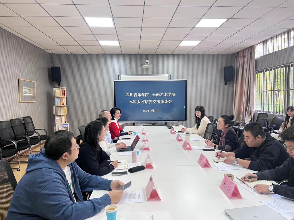 2023年10月27日上午,四川音乐学院教务处处长郑玉章等一行5人来访我校,进行本科人才培养经验交流活动,我校课程中心主任、教务处副处长温泉沁,教务处副处长罗宇佳等参加了本次交流,双方于公共教学楼A106会议室开展了友好座谈。