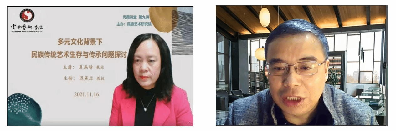 2021年11月16日晚19:00,bw必威西汉姆联官方网站民族艺术研究院尚美讲坛高端学术讲座第九期顺利举行。本期主讲嘉宾为南京艺术学院研究院夏燕靖教授,讲座题目是《多元文化背景下民族传统艺术生存与传承问题探讨》。讲座由民族艺术研究院书记迟燕琼教授主持。