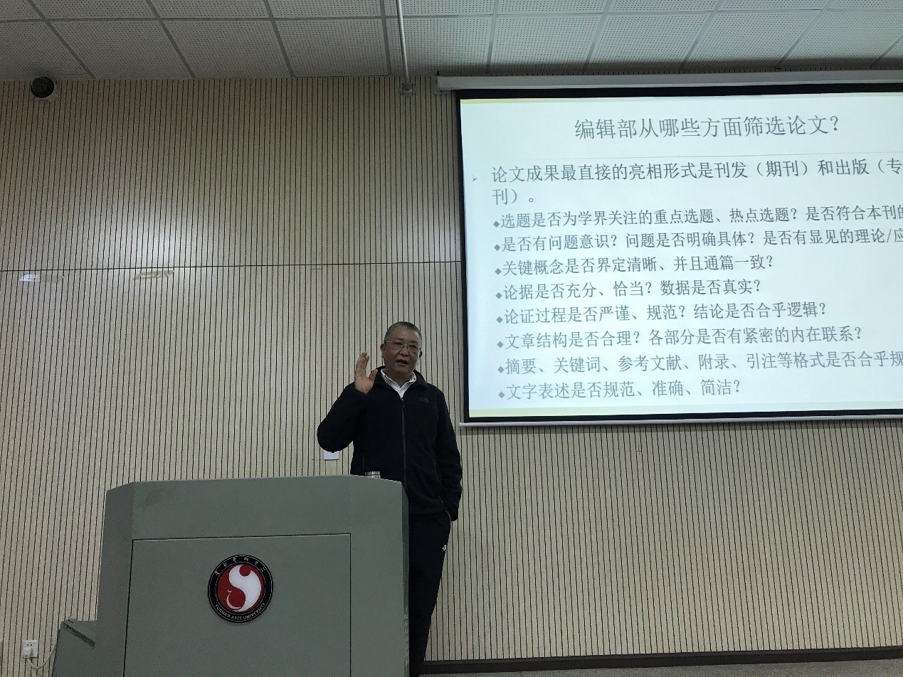 在讲座中,马云华教授就艺术类论文的选题进行了精彩的讲解,包括期刊编辑部通常会从哪些方面筛选论文、论文的选题应遵循什么原则、论文的选题应按照哪些步骤进行等多方面的内容,以其自身经验为同学们的论文选题提供了详尽的指导。