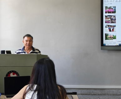 曹先强教授的讲座分为五个部分,首先阐述阿昌族简介和非遗概况,包括国家级和省级代表性名录、非遗传承人等,如户撒刀、阿露窝罗节、民族舞蹈蹬窝罗、阿昌族织锦技艺等,使大家对阿昌族非遗有了广泛的认识;在“州级非物质文化遗产代表性项目阿昌族春灯”的讲解中,细致阐述了阿昌族春灯文化、剧目及曲调等,并为大家现场演唱;随后介绍国家级非遗代表性项目阿昌族创世神话史诗《遮帕麻和遮米麻》,分享阿昌族文化分享民俗志民族影像纪录片、春灯影像小视频、民俗短视频等。最后,讲座的互动环节,话题围绕“非遗传承与保护田野调查方法和路径”展开。现场学生积极提问,与曹先强教授进行了深入的交流和探讨,曹教授结合自身丰富的研究经验,为大家答疑解惑,提供了许多具有建设性的思路和方法。