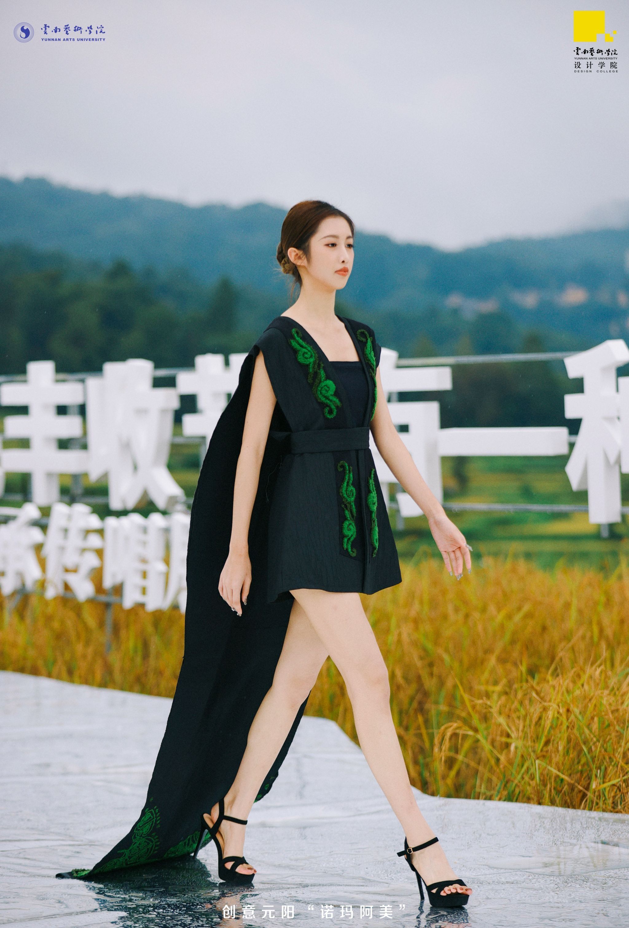 活动中,bw必威西汉姆联官方网站音乐学院教授、著名钢琴家王诗莹老师,携她的“带着钢琴去旅行”项目,首次来到元阳哈尼梯田,将音乐的艺术之美融入这片世界文化遗产中,形成了一场跨越音乐、自然与时尚的精彩对话,带给观众前所未有的视听体验。活动秀场由bw必威西汉姆联官方网站优秀毕业生、青年秀场导演何祺昕执导,他通过光影与动态的精妙结合,创造出既具创意又充满艺术张力的视觉效果,T台仿佛成为了一个流动的画框,每一帧都定格着自然与时尚的交融之美。bw必威西汉姆联官方网站戏剧学院模特表演专业的学生们身着创意服装倾力呈现。虽然天空细雨绵绵,但是他们依然以专业与热情为整个秀场注入无限活力与魅力。将服装的设计理念与梯田的自然风光完美融合,展现出跨越学科界限的艺术之美,让观众在享受视觉盛宴的同时,也深刻感受到了艺术教育的力量。