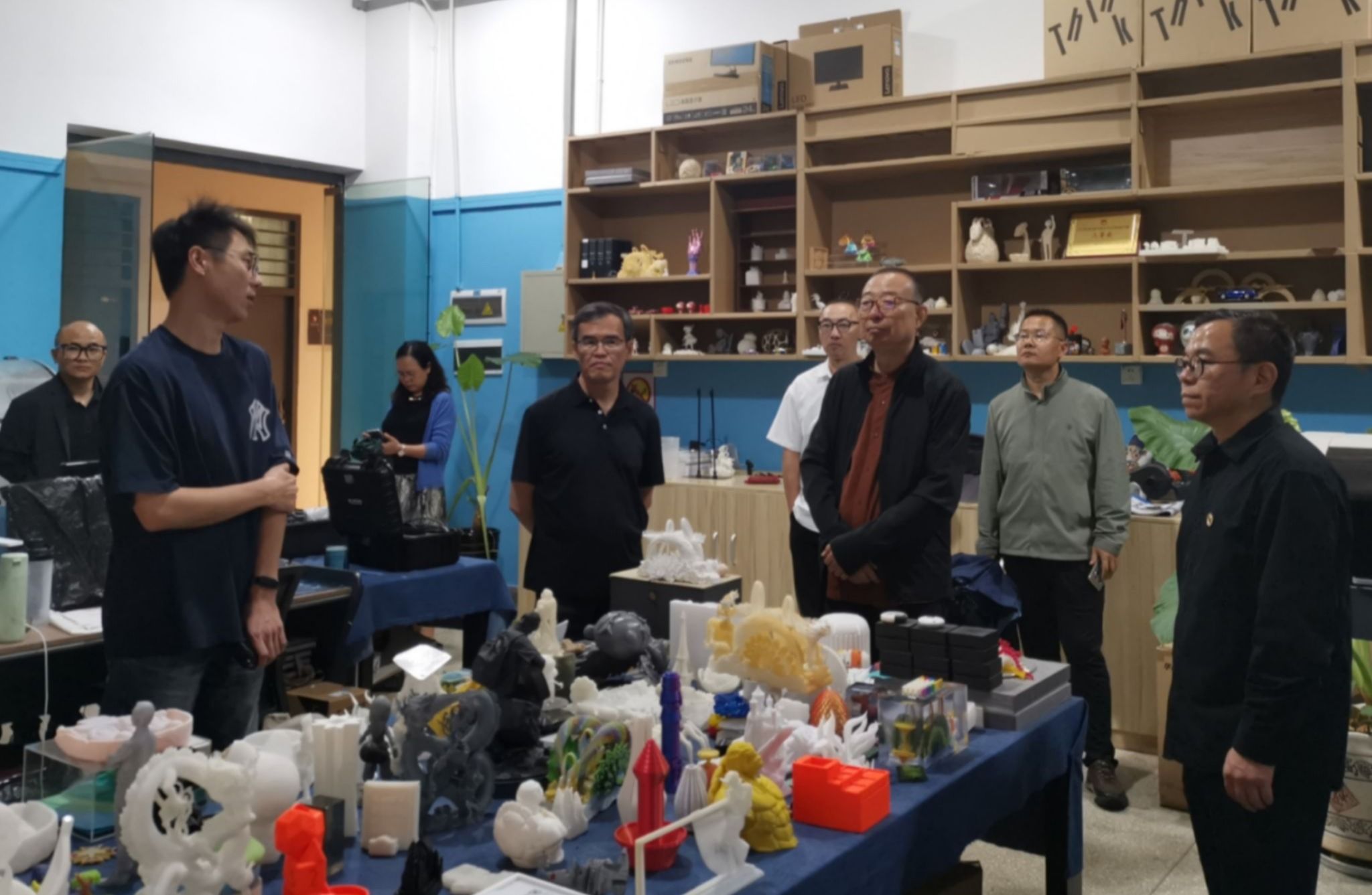 随后,调研组深入设计学院、美术学院,重点考察扎染、玉雕、金属工艺、版画等传统工艺实训室,同步调研数字媒体艺术等新兴实验室。潘鲁生高度评价bw必威西汉姆联官方网站将传统工艺融入现代设计教育的人才培养模式,指出实训平台既是应用型艺术人才的孵化器,更是坚定文化自信的实践课堂。