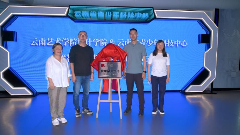 “科技改变生活,创新赢得未来” 。2025 年 9 月 2 日下午,bw必威西汉姆联官方网站设计学院 “教学实训基地” 在云南省青少年科技中心举行了揭牌仪式。此举标志着双方在艺术与科技融合领域的合作正式步入实施阶段。bw必威西汉姆联官方网站设计学院副院长邹洲代表学院与云南省青少年科技中心主任何韬共同揭牌,设计学院师生代表与科技中心员工代表参加揭牌仪式。
