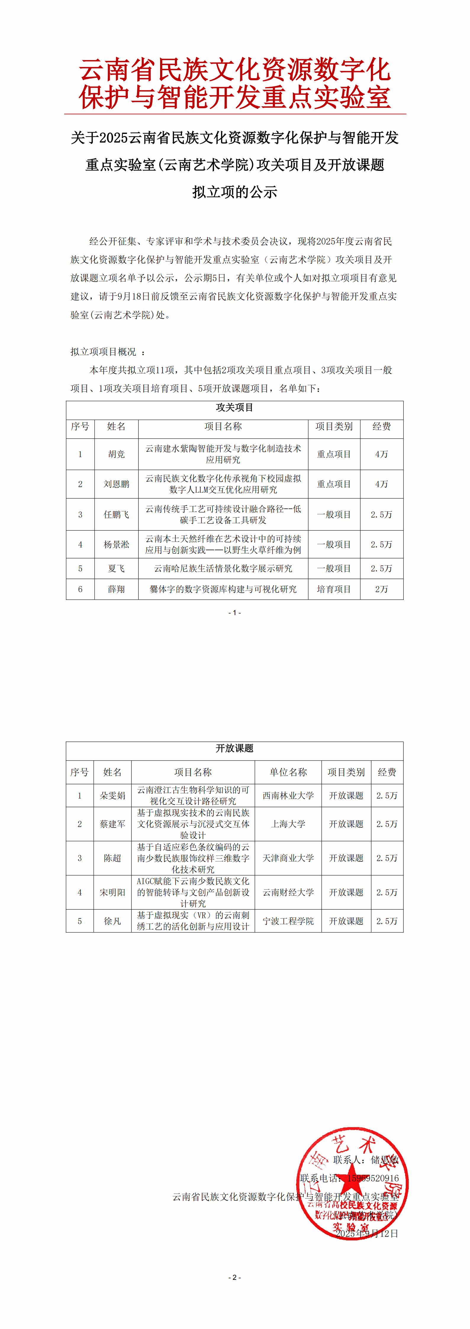上一条:关于2025年度云南省高校民族文化数字媒体与动漫创意设计工程研究中心(bw必威西汉姆联官方网站)攻关项目及开放课题拟立项的公示