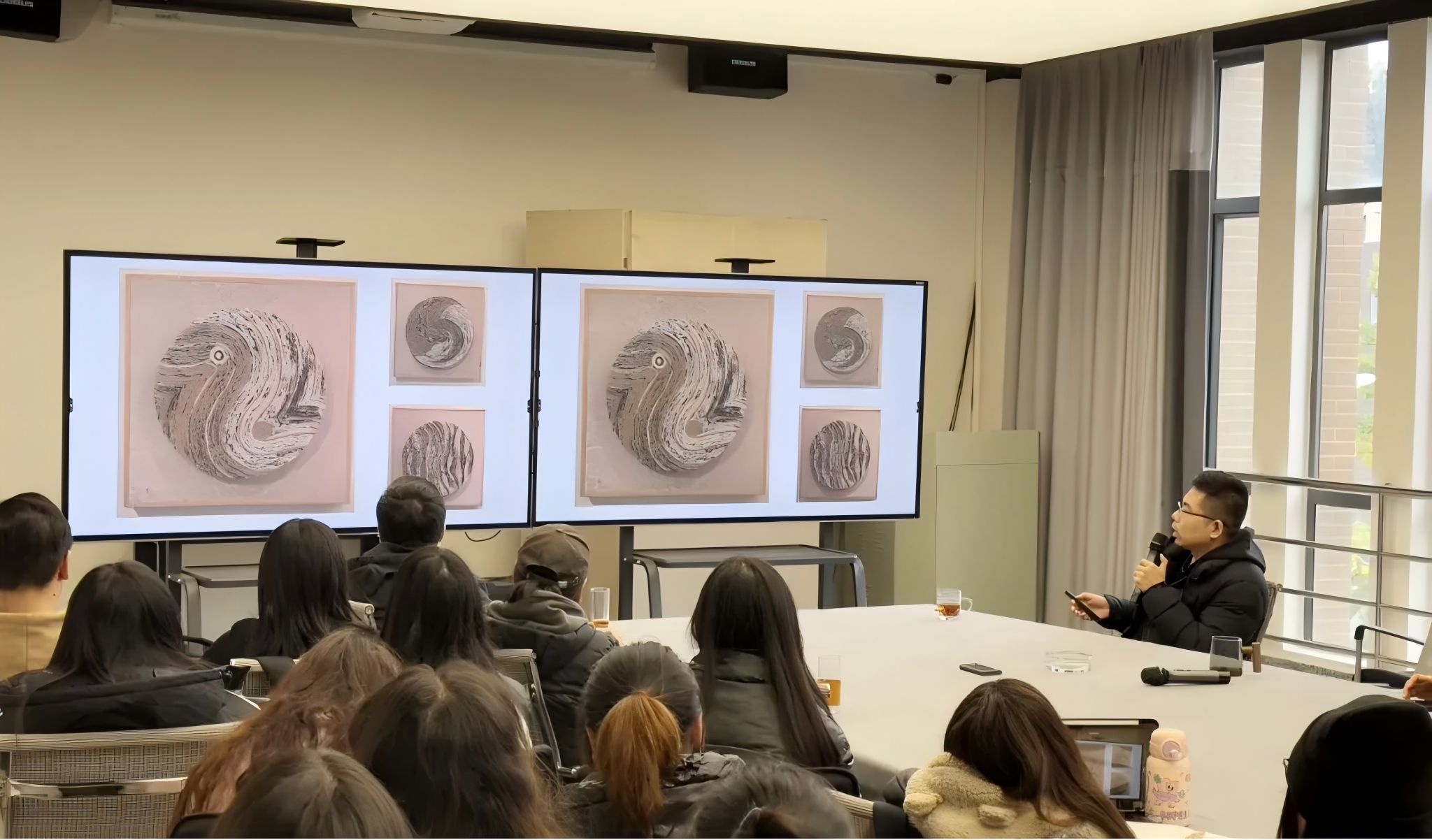 在随后的座谈会上,孟柏伸与绘画专业的师生们展开了深入的探讨,对大家提出的问题进行了详细的分析,并鼓励大家从自身的专业与生活中寻找灵感,不断拓展思维,挑战自我,以激发更多的创作可能性与创造性。