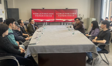 交流活动在美术学院221会议室举行,沐晓熔副院长与湖北美术学院艺术教育学院白露洋副院长及师生作交流发言,交流围绕学科发展规划、课程体系优化、人才培养模式创新等核心议题展开深入探讨。双方结合各自办学特色,分享了美术专业在课程思政、实践教学、产学研融合等方面的经验做法,并就未来加强师生互访、教学资源共享达成初步共识。
