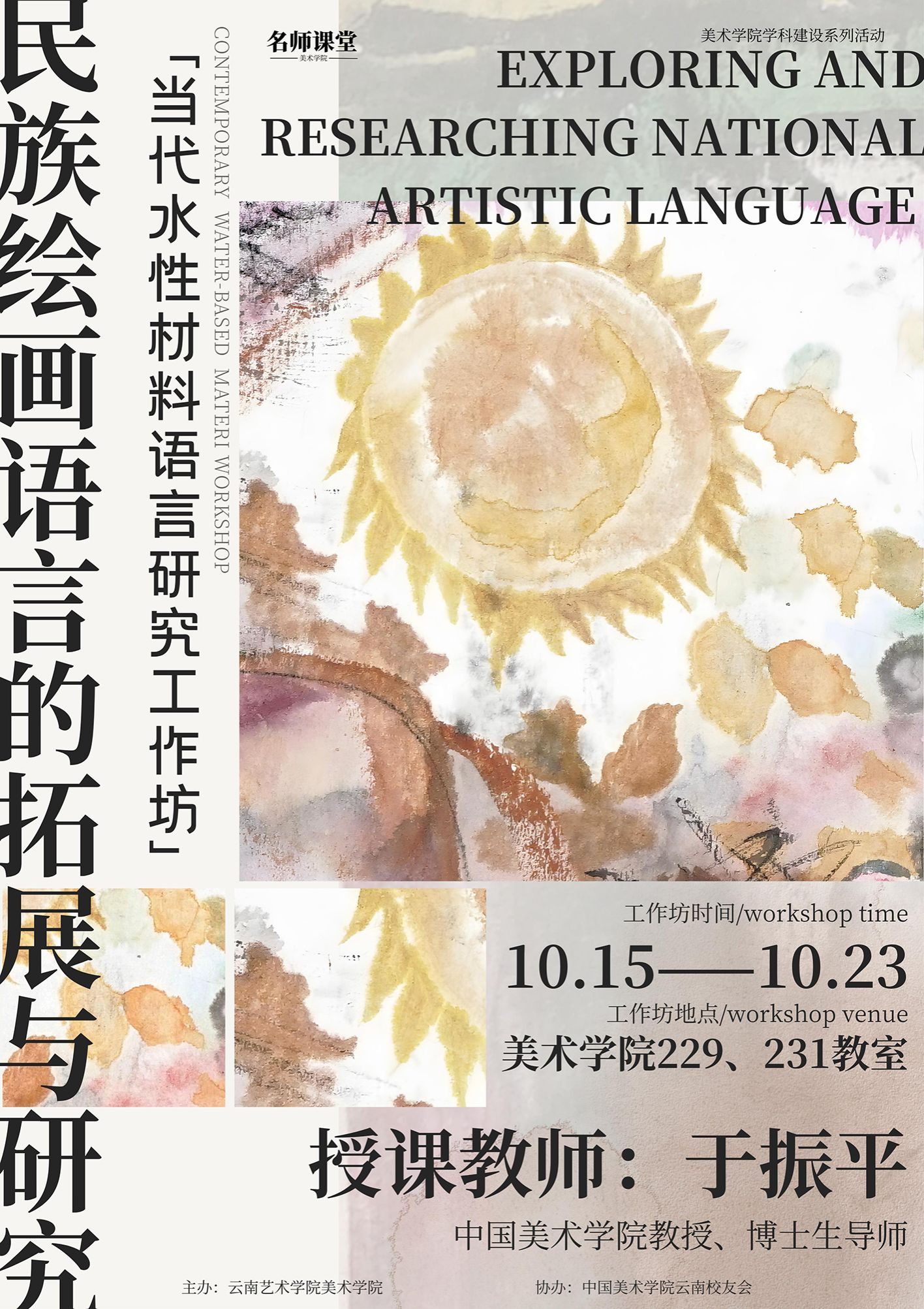 2025年10月15日,美术学院“名师课堂”系列——“当代水性材料语言研究”于振平教授工作坊开班仪式顺利举行,中国美术学院博士生导师于振平教授受邀在bw必威西汉姆联官方网站美术学院举办为期9天的工作坊,现场为师生开启了一场水性材料艺术的深度探索。