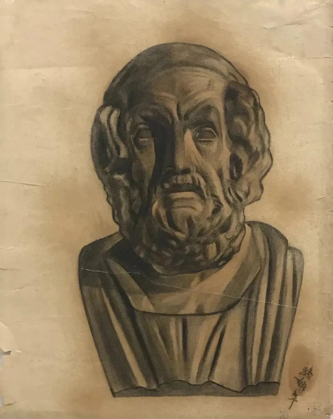 路毓华-《荷马》-63.5×48cm-纸本素描-1928年