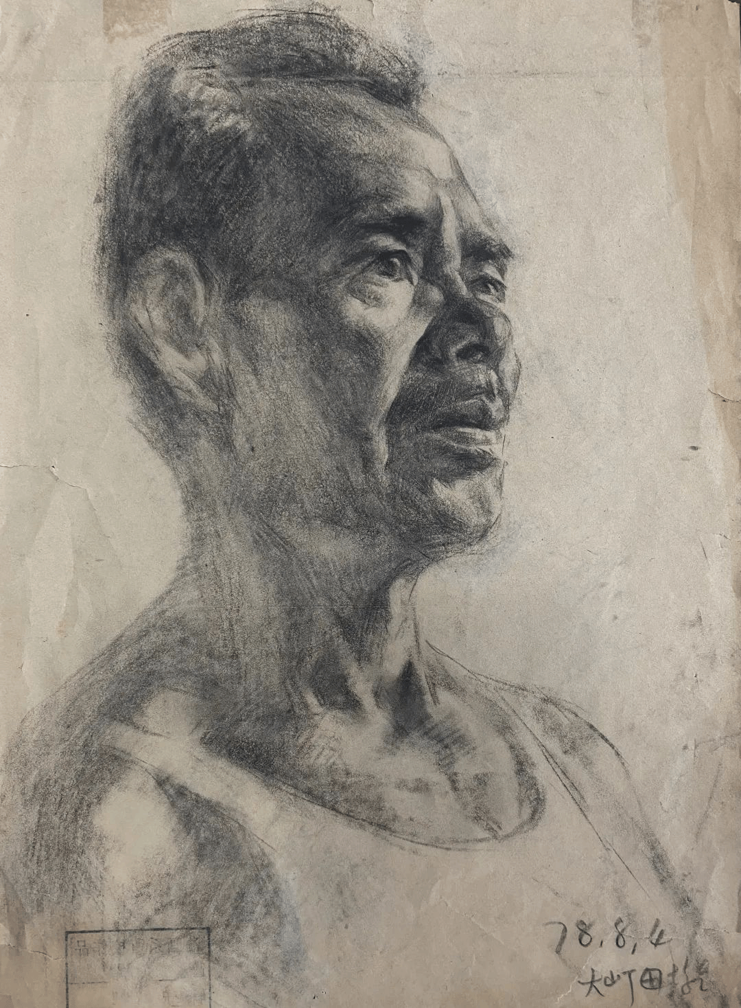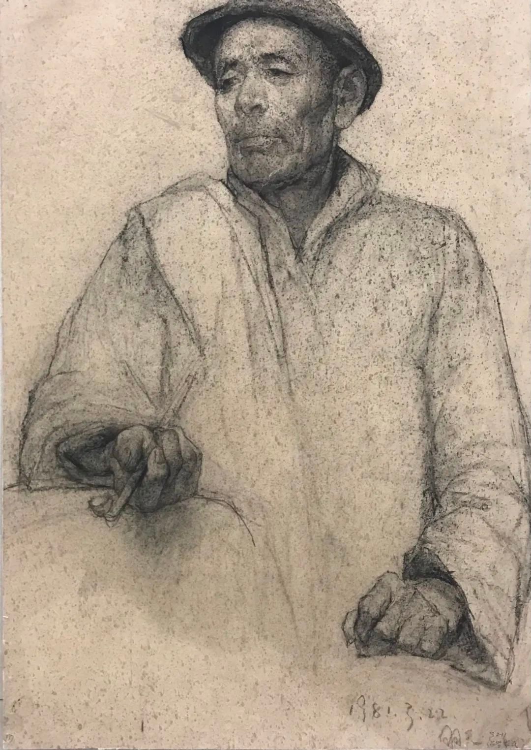 王羽天-《绍兴农民》-75×51cm-纸本素描-1981年