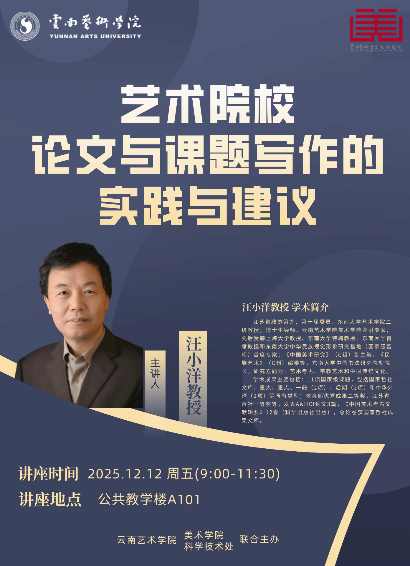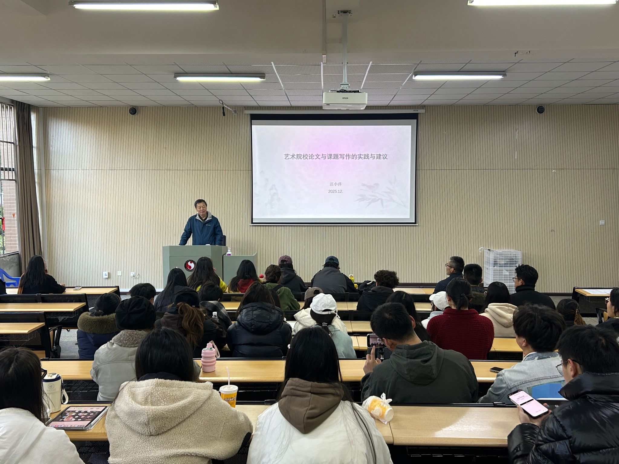2025年12月12日上午9:00-11:30,由bw必威西汉姆联官方网站美术学院、科技处联合主办的学术讲座“艺术院校论文与课题写作的实践与建议”在公共教学楼A101顺利举行。