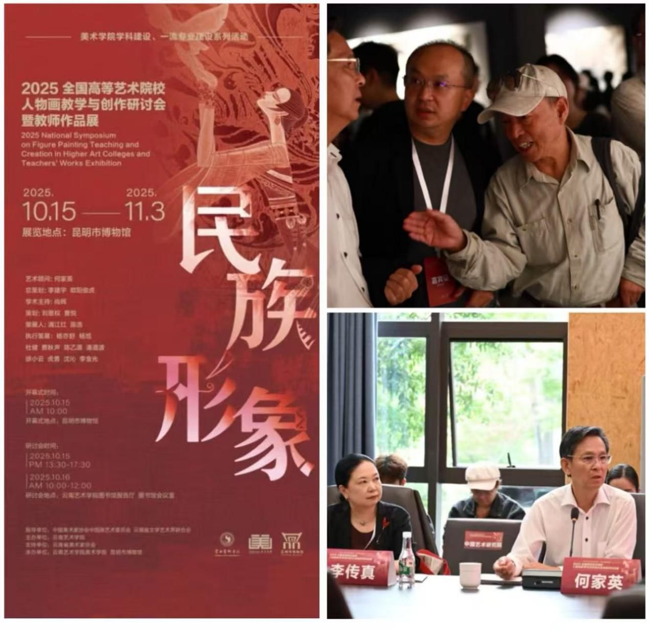 同时,中国画与书法系举办“民族形象-2025全国高等艺术院校人物画教学研讨会暨教师作品展”,在学术研讨会上,围绕“民族形象-全国高等艺术院校人物画的教学与教师作品展”为议题,与来自全国30所艺术高校的同行展开深入探讨。中国画专业结合自身临摹与创作经历,分享了对“云南地域性人物画创作”的思考,同时也从其院校参与者的发言中,了解到不同地域青年画家的创作特色,部分创作者将地域文化元素融入作品,拓宽了中国画的表现边界。