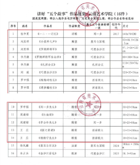 二、在科学研究与创作展演方面,积极发挥校本资源优势,坚持“以人民为中心”的创作导向,注重学科、专业与优秀民族文化的融合研究,彰显主题性雕塑创作的教育美育价值。师生创作的雕塑作品入选《国之大者——中国当代大型主题性雕塑创作手稿巡展》《写意美术作品展》,在中国人民革命军事博物馆、中国美术馆等国家级展馆展出。其中雕塑作品《澜湄之歌》《聂耳》《西南联大——国之脊梁》《西南联大——梁思成、林徽因的家人与友人》4件雕塑作品被中国人民革命军事博物馆收藏。举办教师个人绘画作品展,出版《妙泥——黎广修泥塑艺术研究》著作1部(第一作者)。数字化美育资源和智能化美育应用案例《AI+数字雕塑+3D打印智能化美育应用案例》《科教融汇 思创铸魂——主题美术创作融入课程思政人才培养模式创新实践成果展示》通过省级评审。发表论文3篇。在研云南艺术基金项目1项。依托云南省高校数字化艺术创作重点实验室科研平台在研云南省教育厅科学研究基金教师类项目4项,研究生类项目1项。