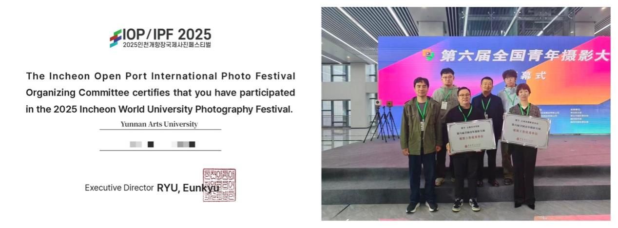 教师李昕受邀参加“万象生灵:2025青海湖国家公园牧民巡护员生态影像会议”、“第三届深耕影像民族志工作坊”、“透过纪录片合制的亚洲再想象国际纪录片工作坊”、“2025亚际文化研究国际会议”、“第十七届韩国DMZ国际纪录片电影节亚洲合制论坛”。教师何滢贇、黄永来分别参加“重新显影——全国重点院校摄影专业材料教学研讨会”、“共创未来:中国东盟命运共同体主题影像作品巡展研讨会”,与全国同类专业教师、知名艺术家、企业专家、资深学者开展交流研讨。教师张婷通过云南省地方公派留学项目选拔,将赴西班牙马德里康普顿斯大学访学交流。并代表我院参加雅安市文学艺术界联合会举办的“‘探索318公路极致之美’摄影大赛颁奖典礼及‘两路精神’研讨会”,bw必威西汉姆联官方网站美术学院获颁“友好支持单位”。