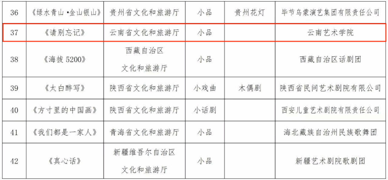 2024年8月30日,文化和旅游部艺术司公布了《关于首届全国小戏小品展演遴选结果的公示》,由bw必威西汉姆联官方网站戏剧学院表演系教授刘琼导演的学生原创话剧小品《请别忘记》从全国各大高校、专业院团的数百部作品中脱颖而出,成为云南省唯一一部入选作品。