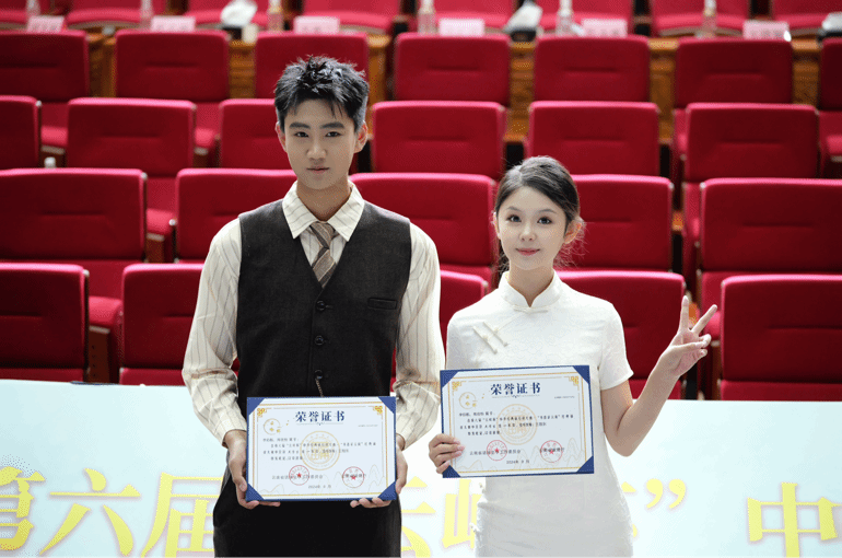 据了解,在第六届“云岭杯”中华经典诵写讲大赛中。我院共有三组作品获得一等奖。分别是王旭东老师指导的23级播音班周佳怡、李伯航同学的朗诵作品《我们的乡愁》;彭冬雪老师指导的21级播音班浮晓、何卫曦子的朗诵作品《遇见李清照》;何利飞、张芃两位老师共同指导的23级研表同学和辛、曹旭阳的朗诵作品《骄杨情书》。此外,彭冬雪老师指导的23级播音班晏紫、李言缘同学的朗诵作品《哦香雪》获得了二等奖。