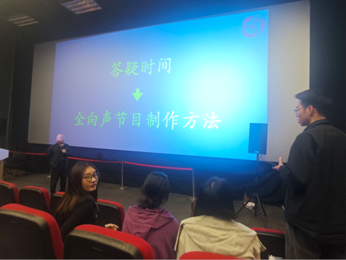 讲座其间,赵平老师与同学们进行了专业方面的交流及录音工作的心得分享,对同学们提出的拾音方法、全向声设备等相关问题进行了一一解答。