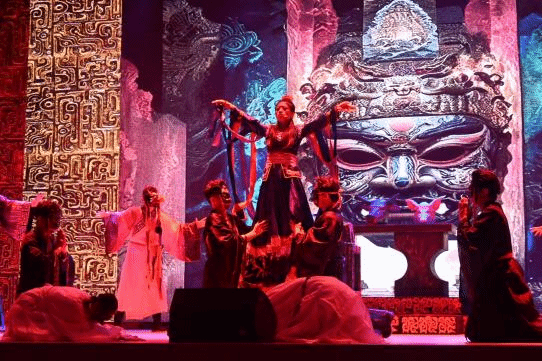 教育剧场《大河》以战国时期为背景,泱族面临着蛮族洪的威胁,国家存亡悬于一线。这样的设定不仅为剧情的发展提供了紧张激烈的氛围,也为探讨个人与集体、社稷与百姓的关系提供了广阔的空间。该剧通过一次河边举行的战争祭祀中出现的“亡国之兆”,以及蛮族洪军队在大河北岸集结的情节,将泱族面临的威胁具象化,使得观众能够身临其境地感受到国家危亡的紧迫感。