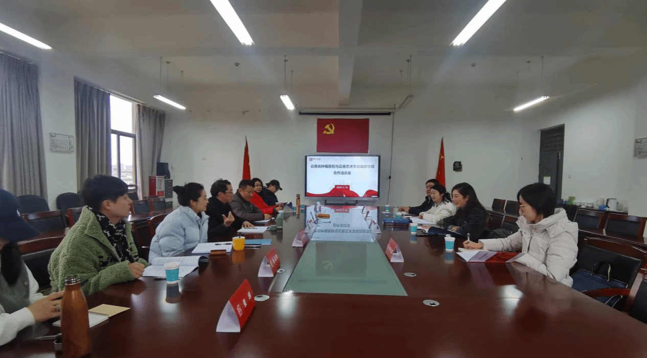 洽谈会上,戏剧学院杨祝飞首先对云南省肿瘤医院代表的到来表示热烈欢迎,并介绍了参会的各位教师。云南省肿瘤医院李娟介绍了来访的各位人员,并简要介绍了此次合作的主要背景,合作目的,创作要求等,希望结合历史、地理、现实、云南多民族等元素融入到医学剧目《合之策》的创作之中。杨祝飞书记表示戏剧学院代表剧目《澜沧水长》《象北旅行》特色鲜明,都是通过艺术的方式展现云南民族团结和生态文明建设成果的力作,戏剧学院教师专业能力优秀,相信戏剧学院有能力完成此次合作。