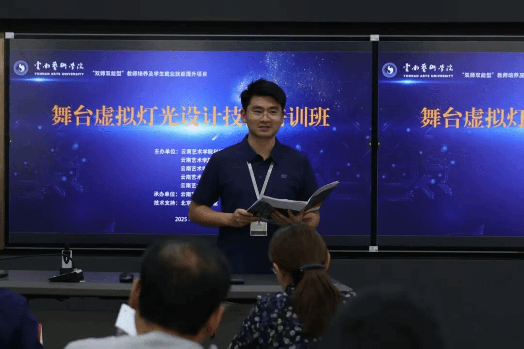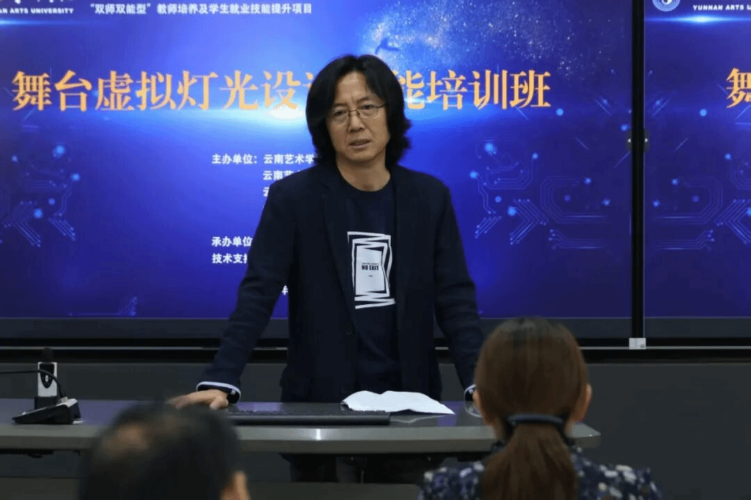 首先,项目负责人李贤年老师就科创中心发展情况及本次培训计划作介绍。他表示,自科创中心成立以来,始终坚持科研创作与教学实践相结合 ,已完成多台校内外大型演出的技术支撑工作,支持完成五项以上教师和学生科研项目申报,积极参与戏剧学院实验教学工作,现已建成在全国高校中处于先进水平的数字化舞台记录与创作平台。本次培训旨在通过系统化的课程设置和专业化的师资配置,进一步提升师生数字舞台技术应用能力 ,推动学校产学研融合发展。